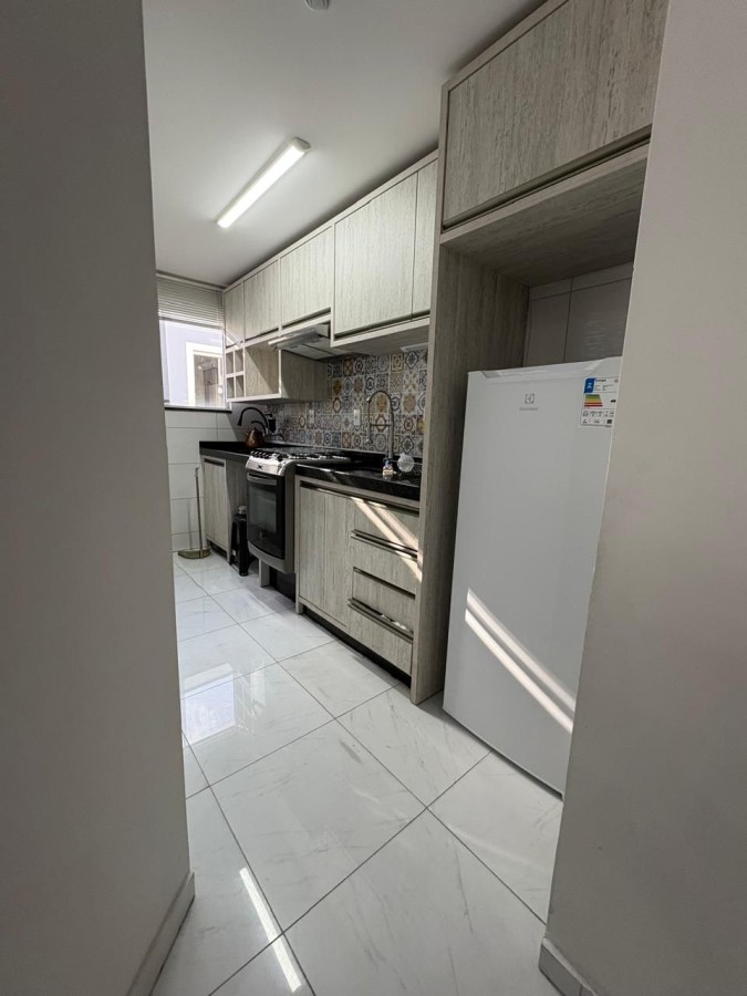 O imóvel será entregue com: camas, mesa, cadeiras, geladeira e cozinha completa.
